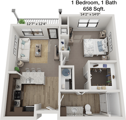 Floor Plan 1x1 - 737 Sqft