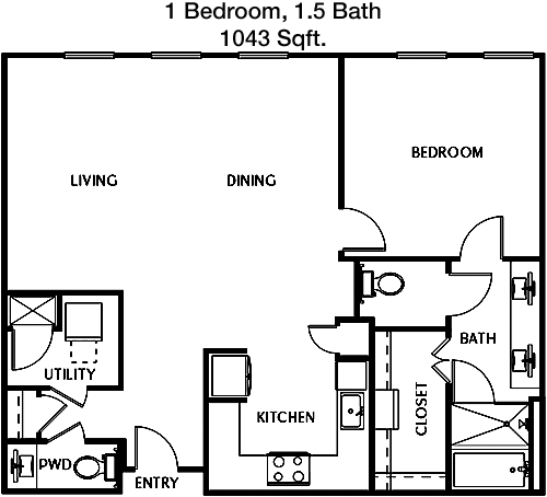 Floor Plan 1x1.5 - 1,049 Sqft