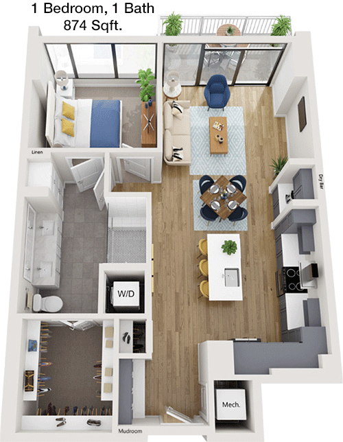Floor Plan 1x1 - 884 Sqft
