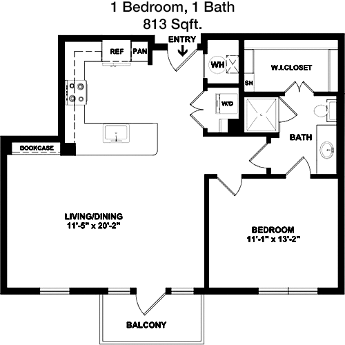 Floor Plan 1x1.5 den - 1,019 Sqft