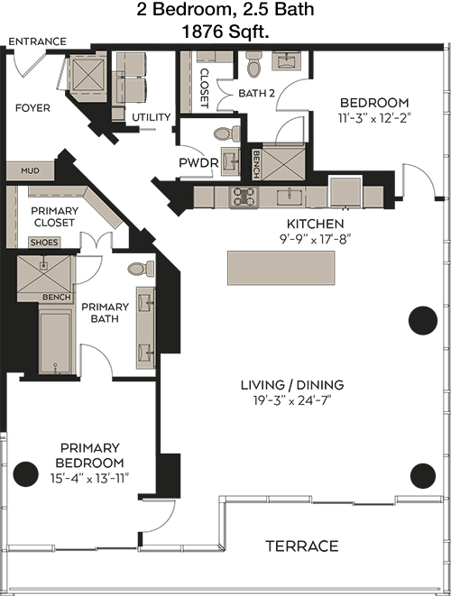 Floor Plan 2x2.5 - 2,106 Sqft