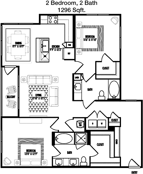 Floor Plan 2x2 - 1,248 Sqft
