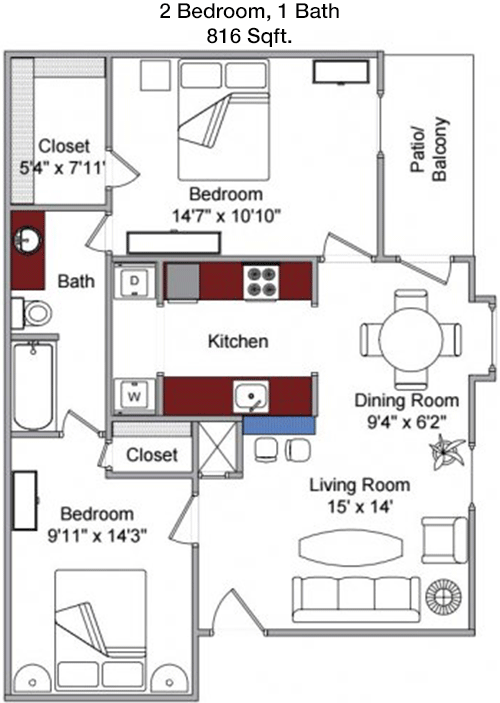 Floor Plan 2x2 - 970 Sqft