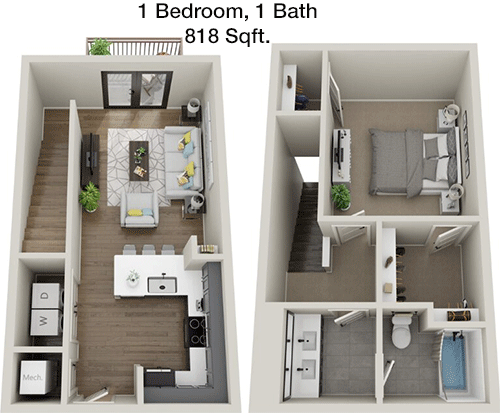 Floor Plan 1x1.5 TH - 1,087 Sqft
