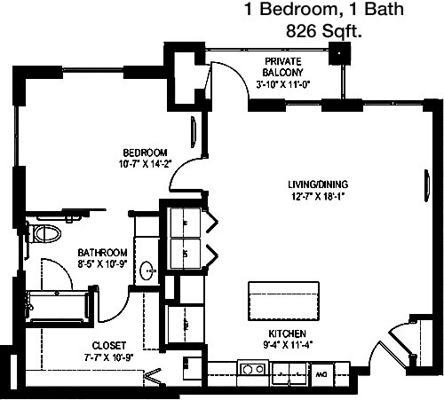 Floor Plan 1x1 - 888 Sqft