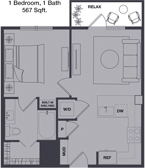 Floor Plan 1x1 - 629 Sqft