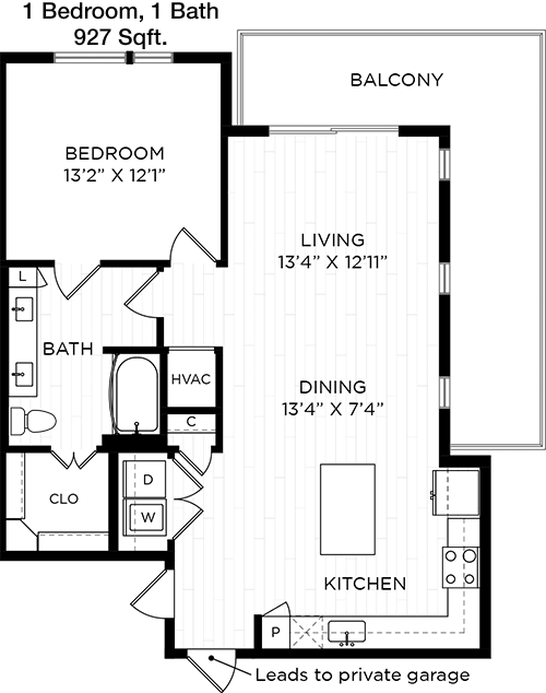 Floor Plan 1x1 - 636 Sqft