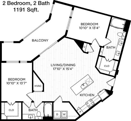 Floor Plan 2x2 - 1,251 Sqft