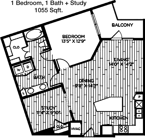 Floor Plan 1x1 - 866 Sqft