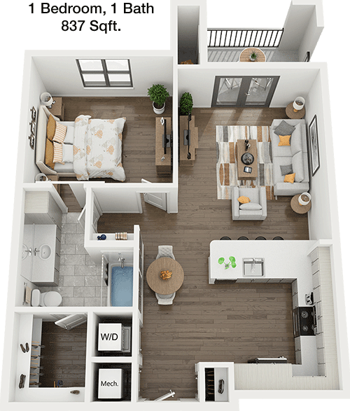 Floor Plan 1x1 - 790 Sqft