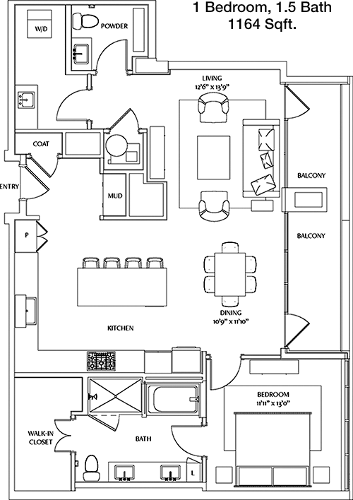 Floor Plan 1x1 - 921 Sqft
