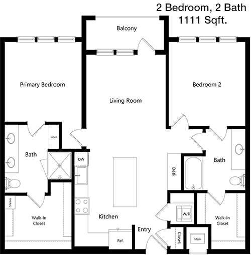 Floor Plan 2x2 - 1,213 Sqft