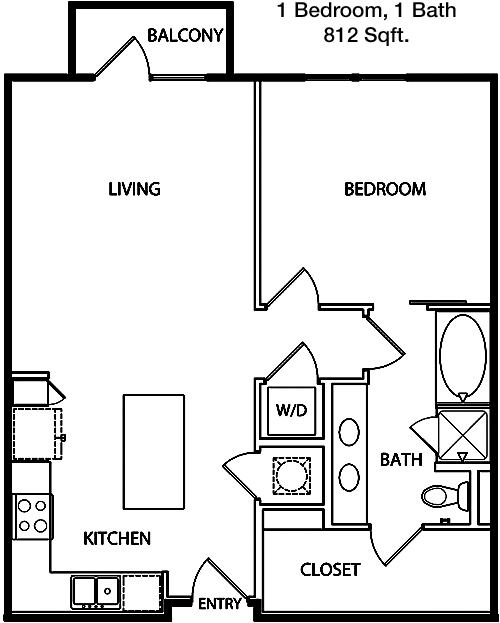 Floor Plan 1x1 - 704 Sqft