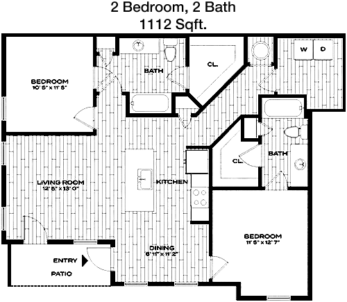 Floor Plan 2x2 - 1,172 Sqft