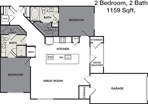 Floor Plan 2x2 - 1,162 Sqft
