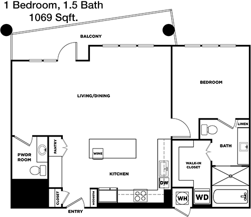 Floor Plan 1x1 - 1,171 Sqft