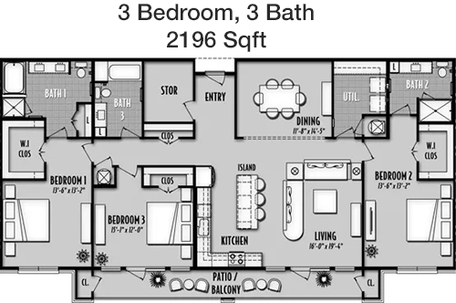 Floor Plan 3x3 - 1,538 Sqft