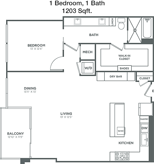 Floor Plan 1x1 - 951 Sqft
