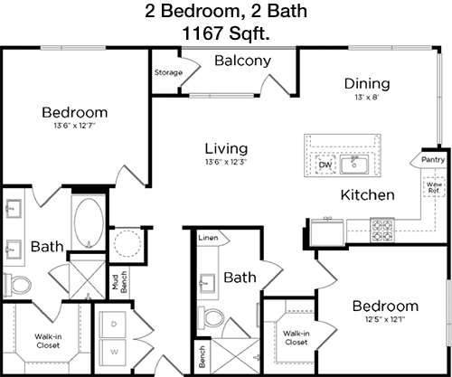 Floor Plan 2x2 - 1,299 Sqft