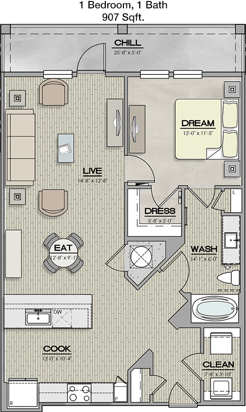 Floor Plan 1x1 - 746 Sqft