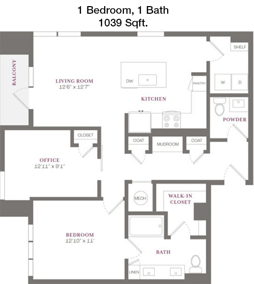 Floor Plan 1x1.5 den - 1,075 Sqft