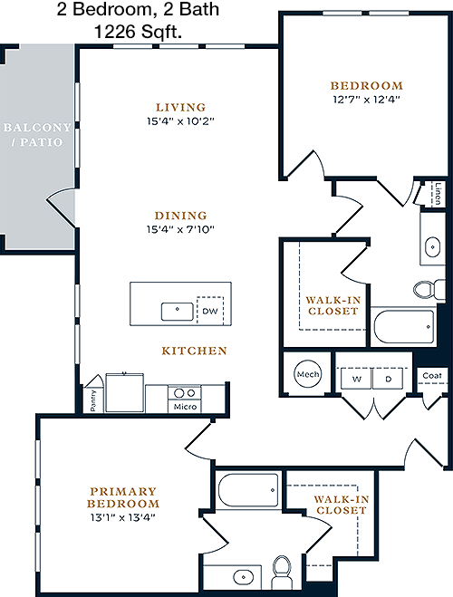 Floor Plan 2x2 - 1,131 Sqft