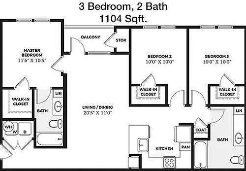 Floor Plan 3x2 - 1,105 Sqft