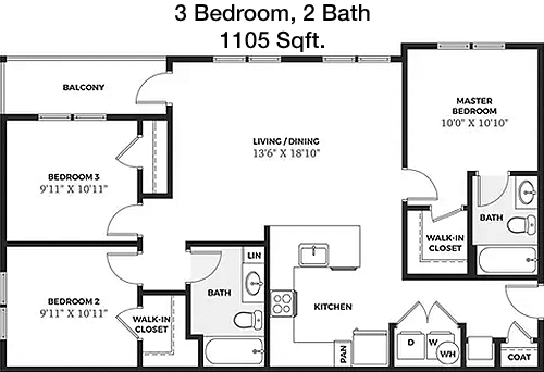 Floor Plan 3x2 - 1,104 Sqft