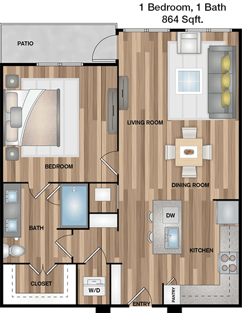 Floor Plan 1x1 - 704 Sqft