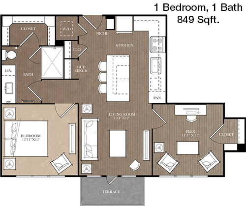Floor Plan 1x1.5 den - 1,301 Sqft