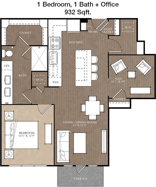 Floor Plan 1x1 den - 1,173 Sqft
