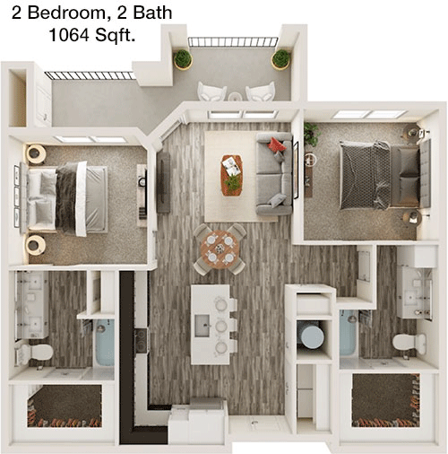Floor Plan 2x2 - 1,047 Sqft