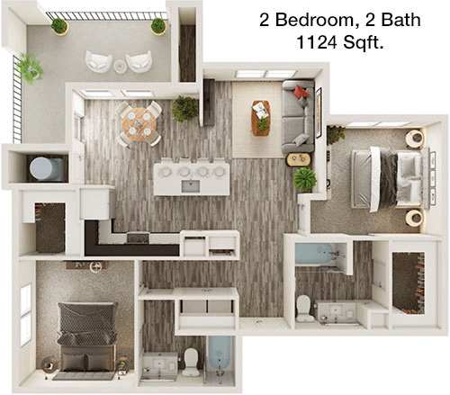 Floor Plan 2x2 - 1,064 Sqft