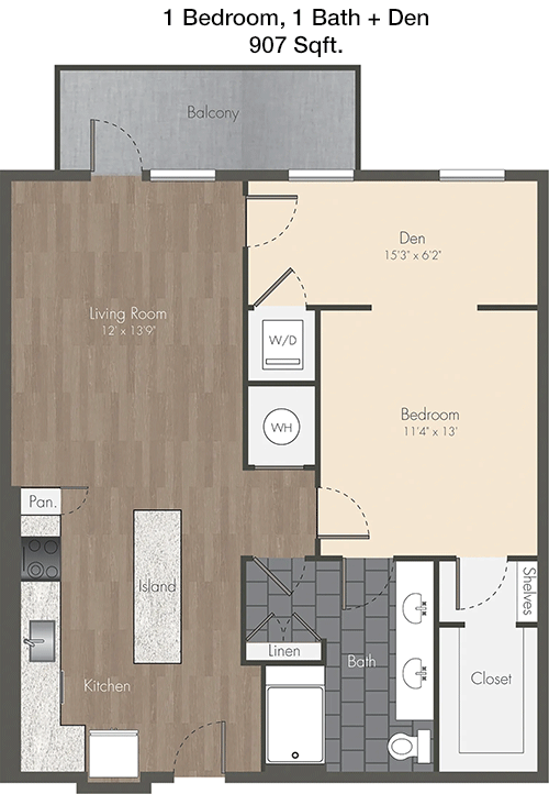 Floor Plan 1x1 - 906 Sqft