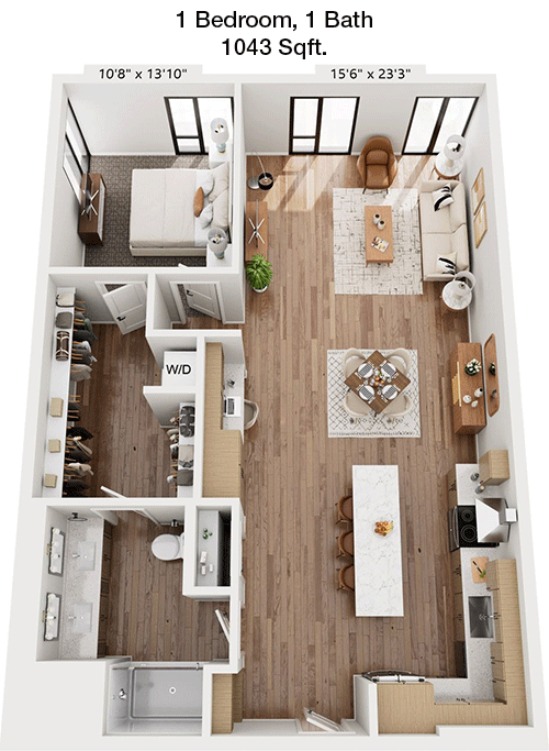 Floor Plan 1x1 - 1,051 Sqft