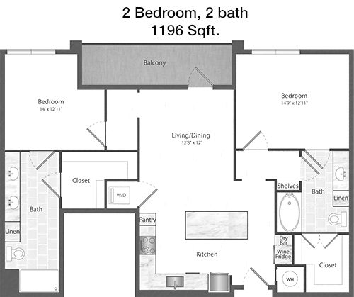 Floor Plan 2x2 - 1,294 Sqft