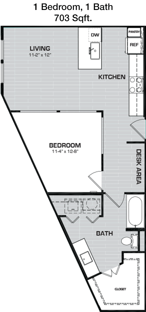 Floor Plan 1x1 - 721 Sqft