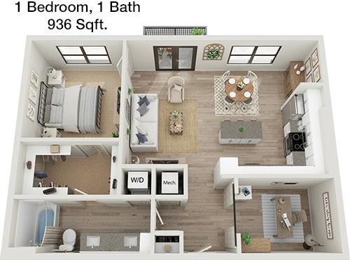 Floor Plan 1x1 - 732 Sqft