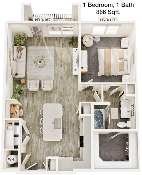 Floor Plan 1x1 - 905 Sqft