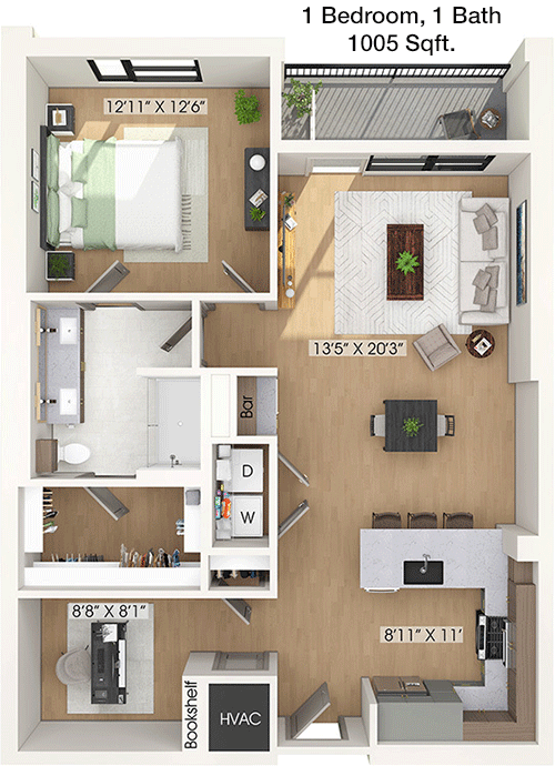 Floor Plan 1x1 - 937 Sqft