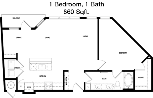 Floor Plan 1x1 - 851 Sqft