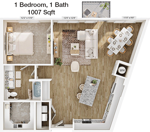 Floor Plan 1x1 - 744 Sqft