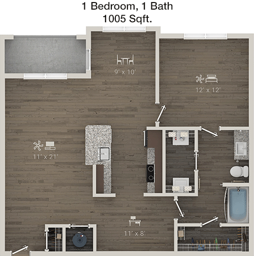 Floor Plan 1x1 - 985 Sqft