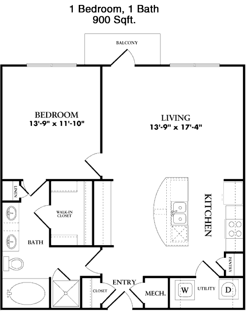 Floor Plan 1x1 - 795 Sqft
