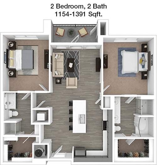 Floor Plan 2x2 - 1,101 Sqft