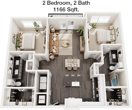 Floor Plan 2x2 - 1,159 Sqft