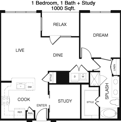 Floor Plan 1x1 - 944 Sqft