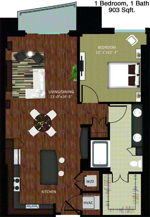Floor Plan 1x1 - 897 Sqft