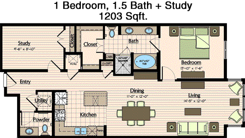 Floor Plan 1x1.5 den - 1,200 Sqft