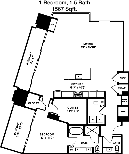Floor Plan 1x1 - 790 Sqft